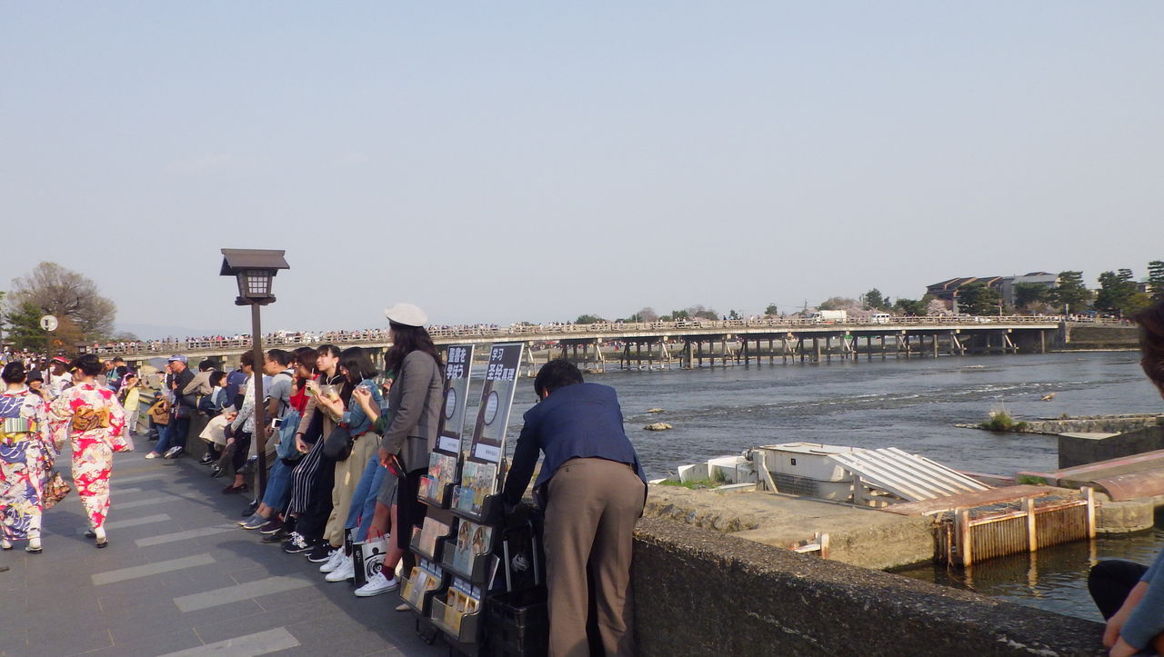ひたすら歩き続けて雑踏多しの渡月橋。変な山行だ。
