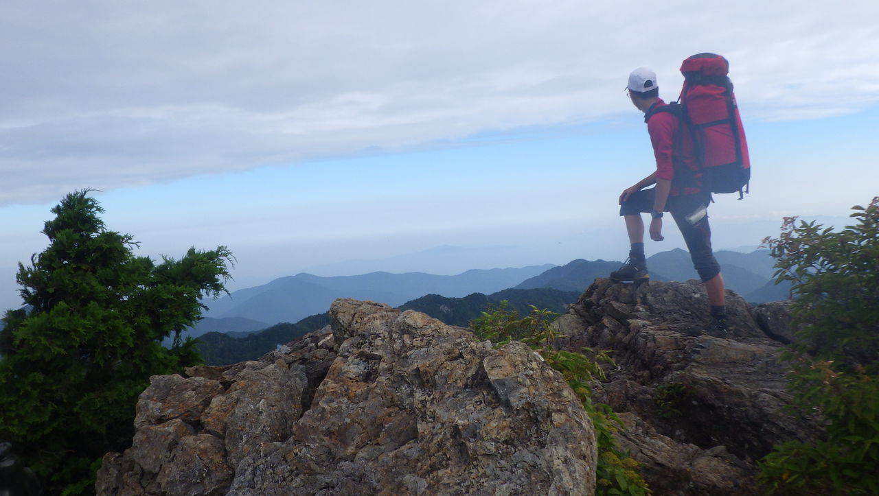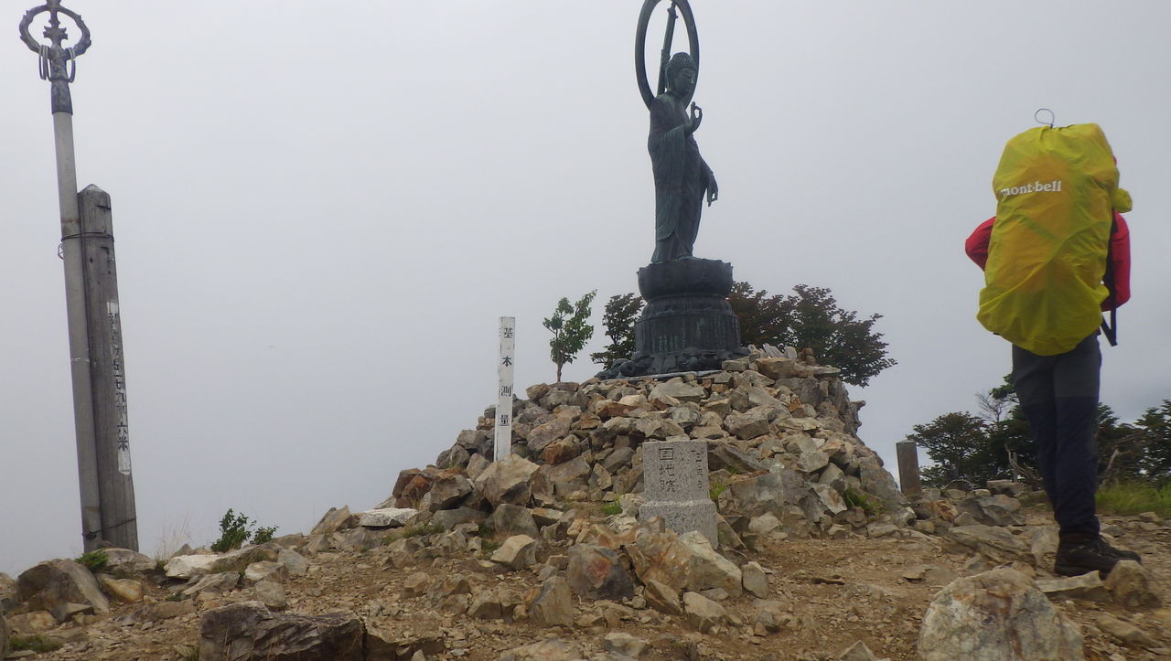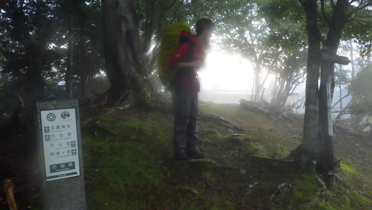 12:10 四寸岩山 かなりの急登でした。いきなり奥駈道の辛さを実感させられました。 しかも天候がかなり崩れ出す…