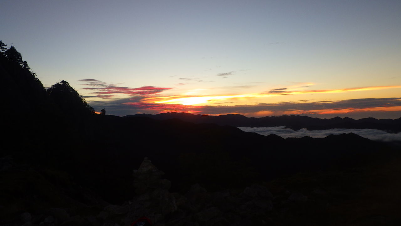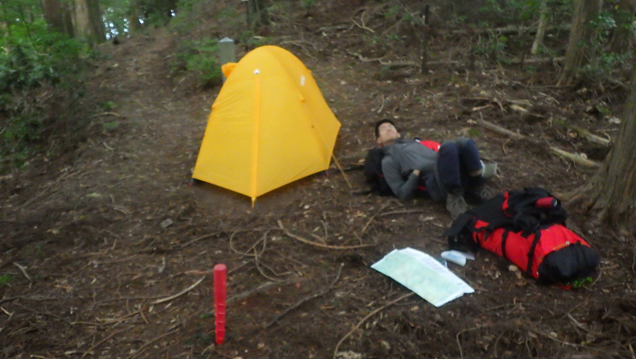 そこから大森山の分岐まで行って幕営。久々のテント泊。