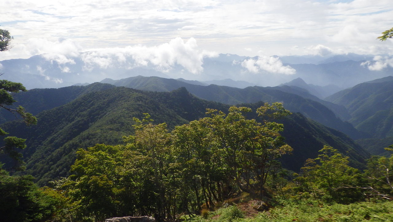 越えてきた峰々を振り返る。今日も午前中は天気がいい!そして山深い…