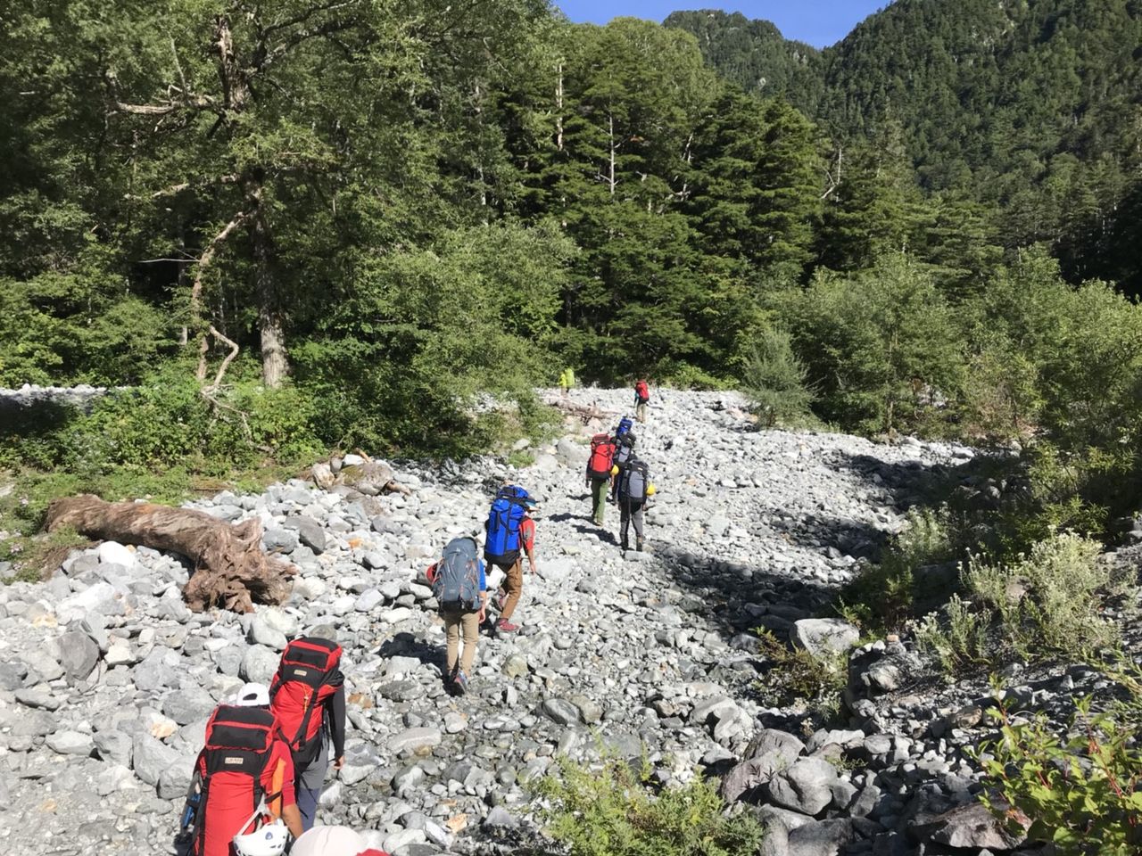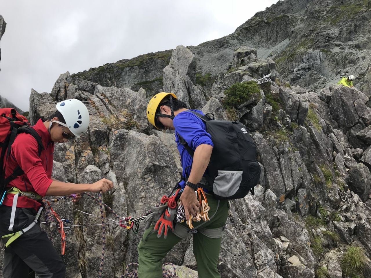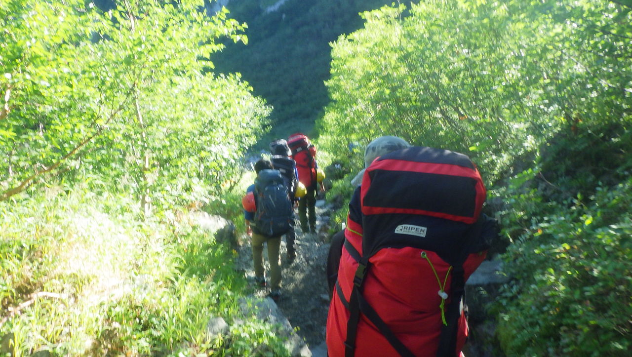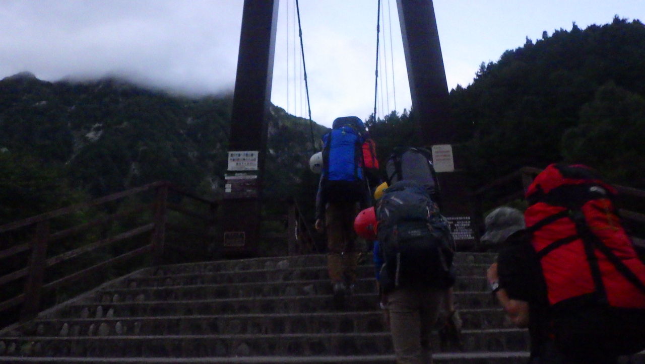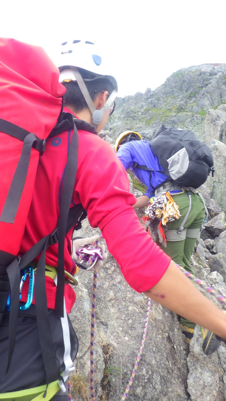 本当はこの日は徳澤から涸沢に移動して近くの岩場で訓練をする計画でしたが、台風接近中ということで横尾~涸沢(テント設営)~北穂高岳~涸沢という若干ハードな行程に変更となりました。