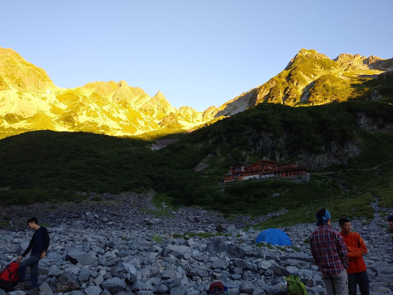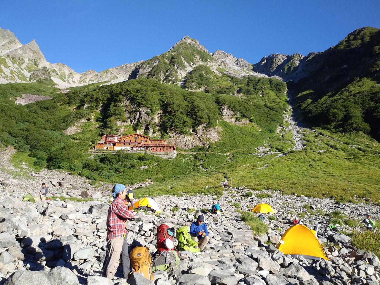この日は徳澤に宿泊する予定だったのですが、台風が接近しているということで横尾に宿泊し、二日目に北穂高岳に登頂するということに計画が変更になりました。