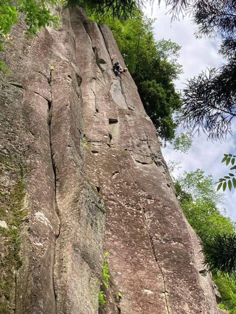 そこのムーブはクラックが細いのでほぼほぼフェイスムーブ。比較が難しいけど5.11前半かな。
