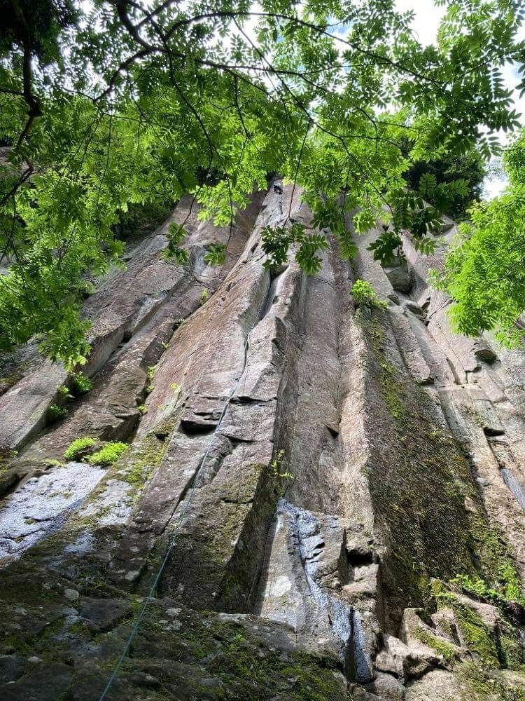 フェイスムーブをこなすとレッジへ。そこから♯0.1~#0.4くらいにかけてじわじわ広がる相当質の高いフィンガークラック。触ってないけど5.11+くらいだろうか。フィンガージャムではなく、フレアしているところに変形ハンドジャムが主体になる。